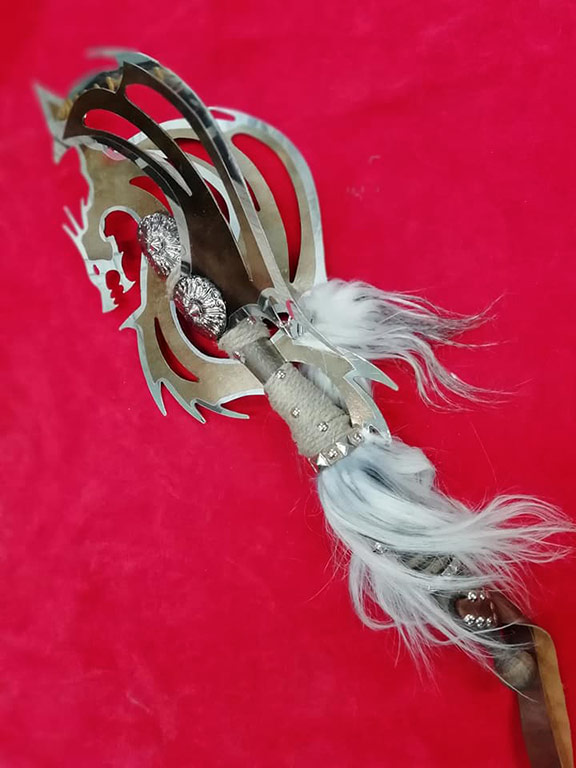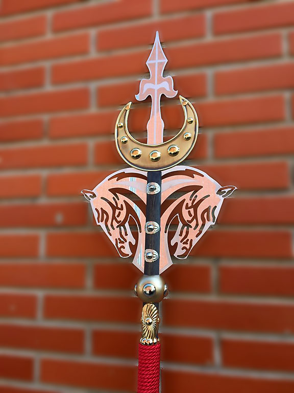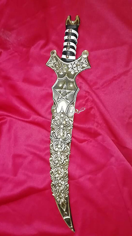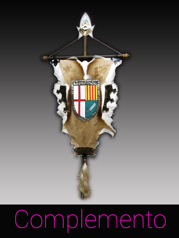 Complementos relacionados con las fiestas de moros y cristianos. Piezas personalizadas con incrustaciones y placas grabadas..